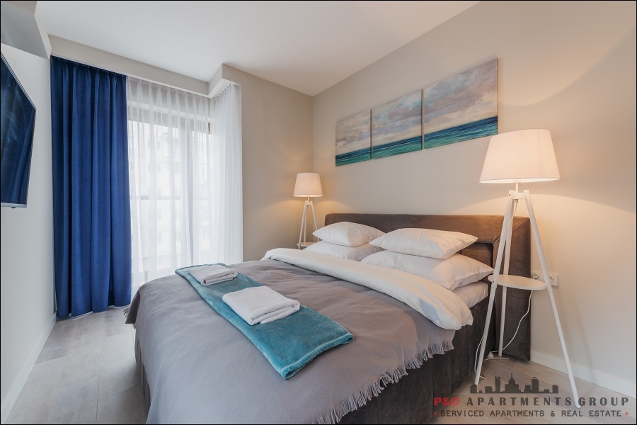 Warszawa MokotówNowoczesny apartament 2-pokojowy z aneksem kuchennym, wykończony w wysokim standardzie z najwyższą starannością i dbałością o szczegóły, zlokalizowany na 4 piętrze, na nowym osiedlu Dom Development. Apartament wyposażony jest w wygodne i eleganckie meble, sprzęt i armaturę. W sypialni znajduje się dwuosobowe łóżko, w części wypoczyn[...]