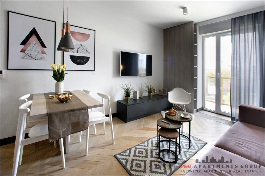 Warszawa MokotówNowoczesny, klimatyzowany apartament z balkonem, zlokalizowany na nowym osiedlu Moduo House, w dzielnicy Mokotów, na terenie Służewca, w pobliżu Galerii Mokotów, z dobrą infrastrukturą komunikacyjną w kierunku Metra Wilanowska, Centrum, lotniska.. Apartament 2-pokojowy z aneksem kuchennym, luksusowo urządzony, wyposażony w stylowe i gustow[...]