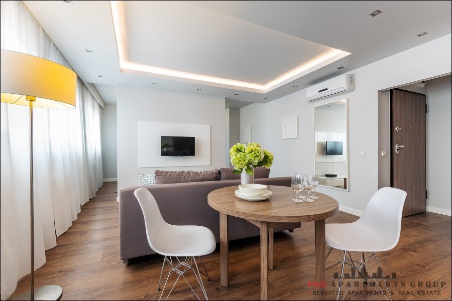 Warszawa CentrumPrzestronny apartament w ciepłych kolorach, funkcjonalny pod każdym względem. Nowoczesne umeblowanie tworzy klimat, który spodoba się osobom ceniącym sobie przestronność, wysoki standard, doskonałą lokalizację jak i turystom lub grupie przyjaciół, chętnym poznać uroki Warszawy. Złożony z przestronnego salonu połączonego z kuchn[...]